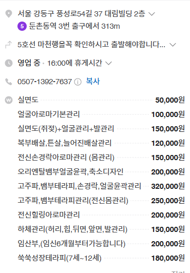 평소에 등마사지, 하체 마사지, 발마사지를 종종 받으러 다니곤 하는데