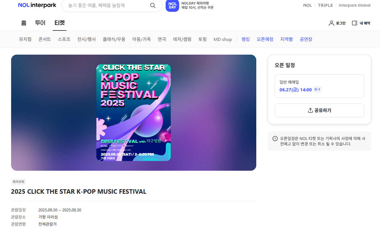 현재까지 2025 CLICK THE STAR K-POP MUSIC FESTIVAL의 공식 라인업은 일부 아티스트만 공개되었습니다.