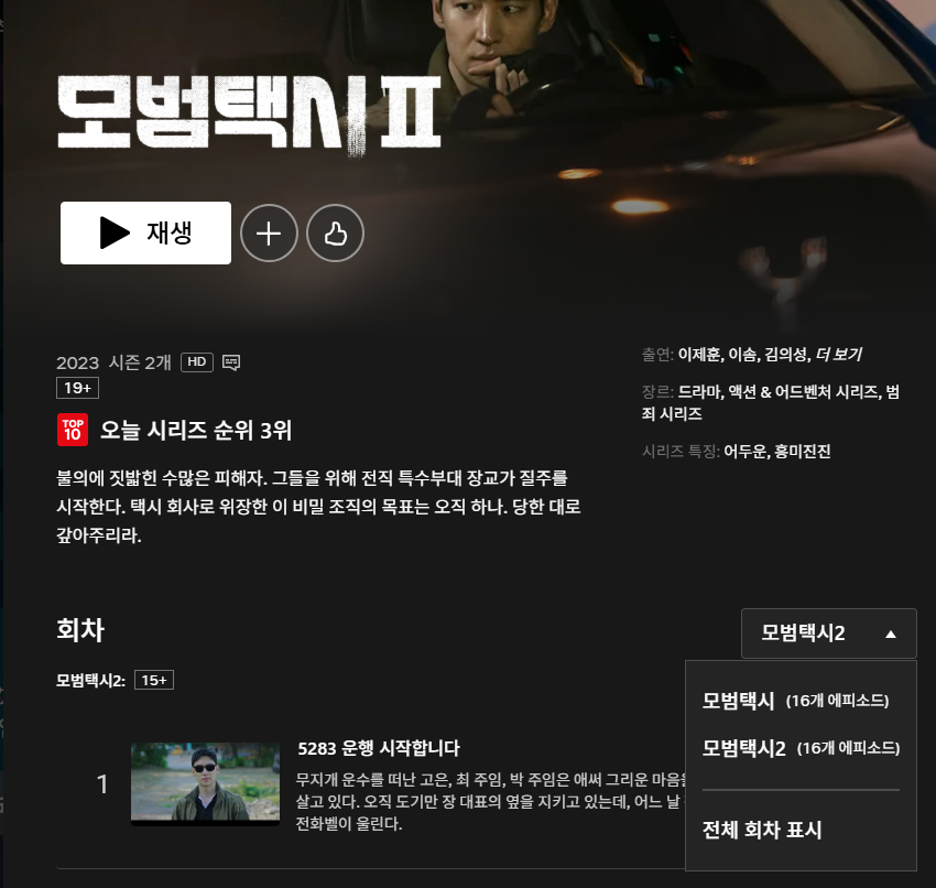 ‘모범택시’는 법으로 처벌받지 못한 악인들을 대신 응징해주는 '무지개 운수'의 활약을 그린 드라마입니다. 시즌2에서도 여전히 “정의는 살아있다” 는 메시지를 중심에 두고, 다채로운 사건들과 캐릭터들의 성장 스토리를 흥미롭게 풀어갑니다.