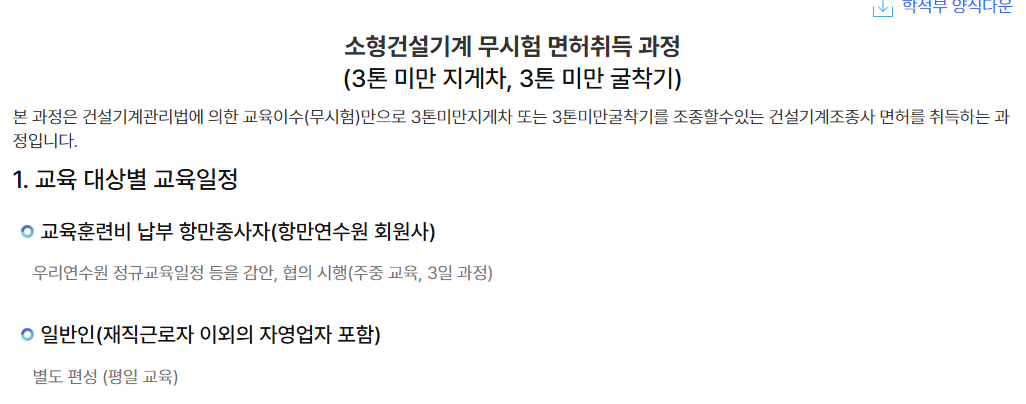 3톤미만 지게차 및 3톤 미만 굴착는 교육만으로 면허 취득이 가능합니다.