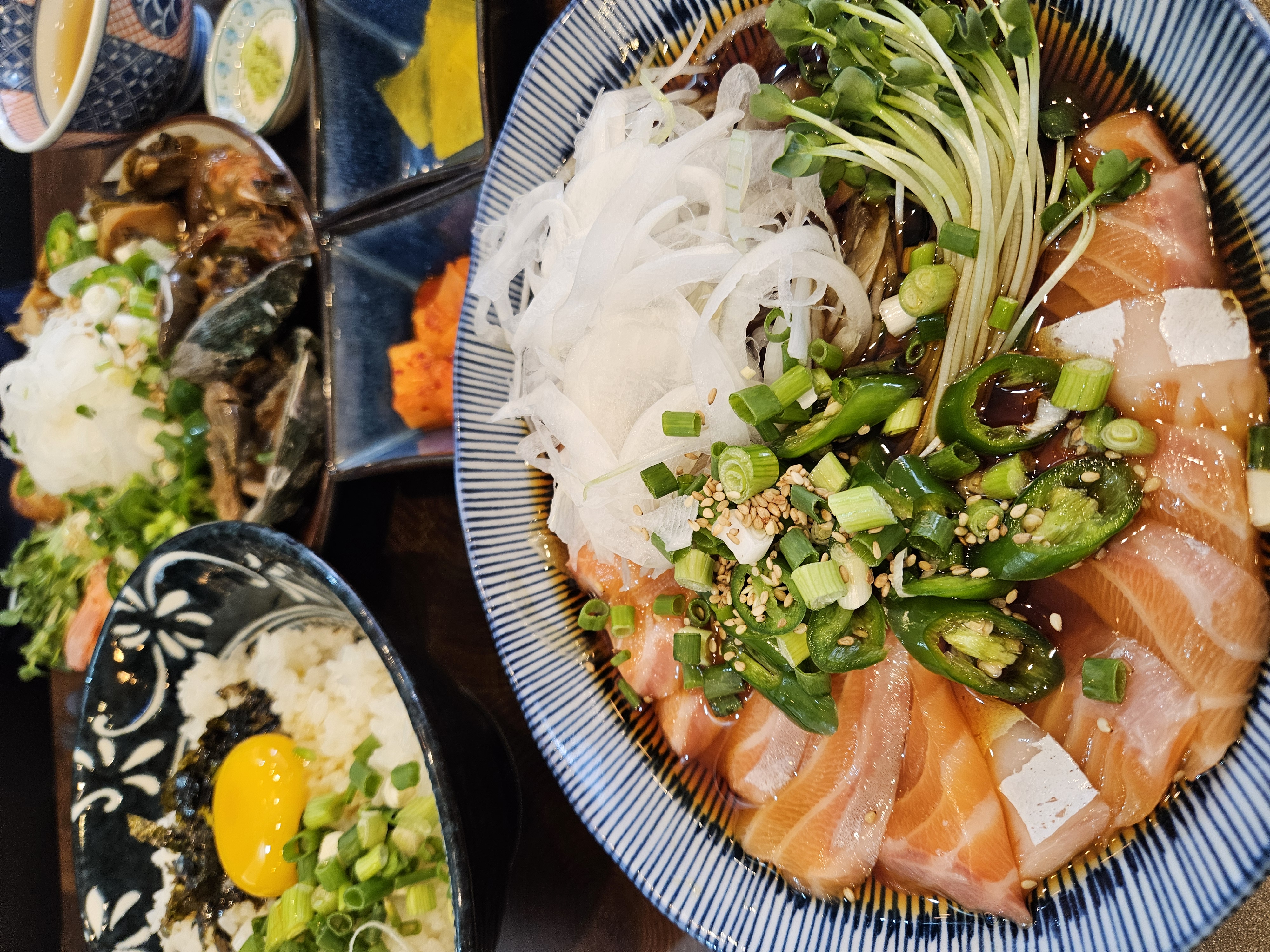 연어장덮밥 등 맛있는 메뉴 다양합니다.